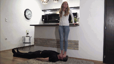 Mistress Marianna tricked her ex boyfriend into visiting her one last time . He did not know that it was a trap, and he innocently came. When he got there, Marianna was waiting for him. She laid him down and started trampling and walking up and down his body. She even sat on him with her full weight, smothering him in the process, but she did not really feel pity for him.