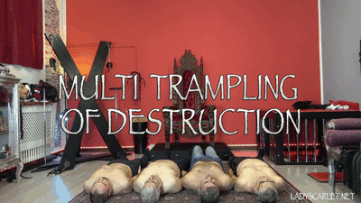 Mistresses Suzanna, Ruby and Inka run a cult. The cult has very specific rules but the biggest one was that they did not tolerate people who ran away. The whole cult lived in a remote village away from civilization. They got news that some deserters had been caught and were being brought to them. The punishment of being a deserter was quite harsh; that is why not many people tried running away. They wore their high heeled boots as they went inside the room the deserters were being kept. They started trampling on the deserters, one as the other watched. They trampled on him with such force and did not feel pity on him even as he cried in pain.